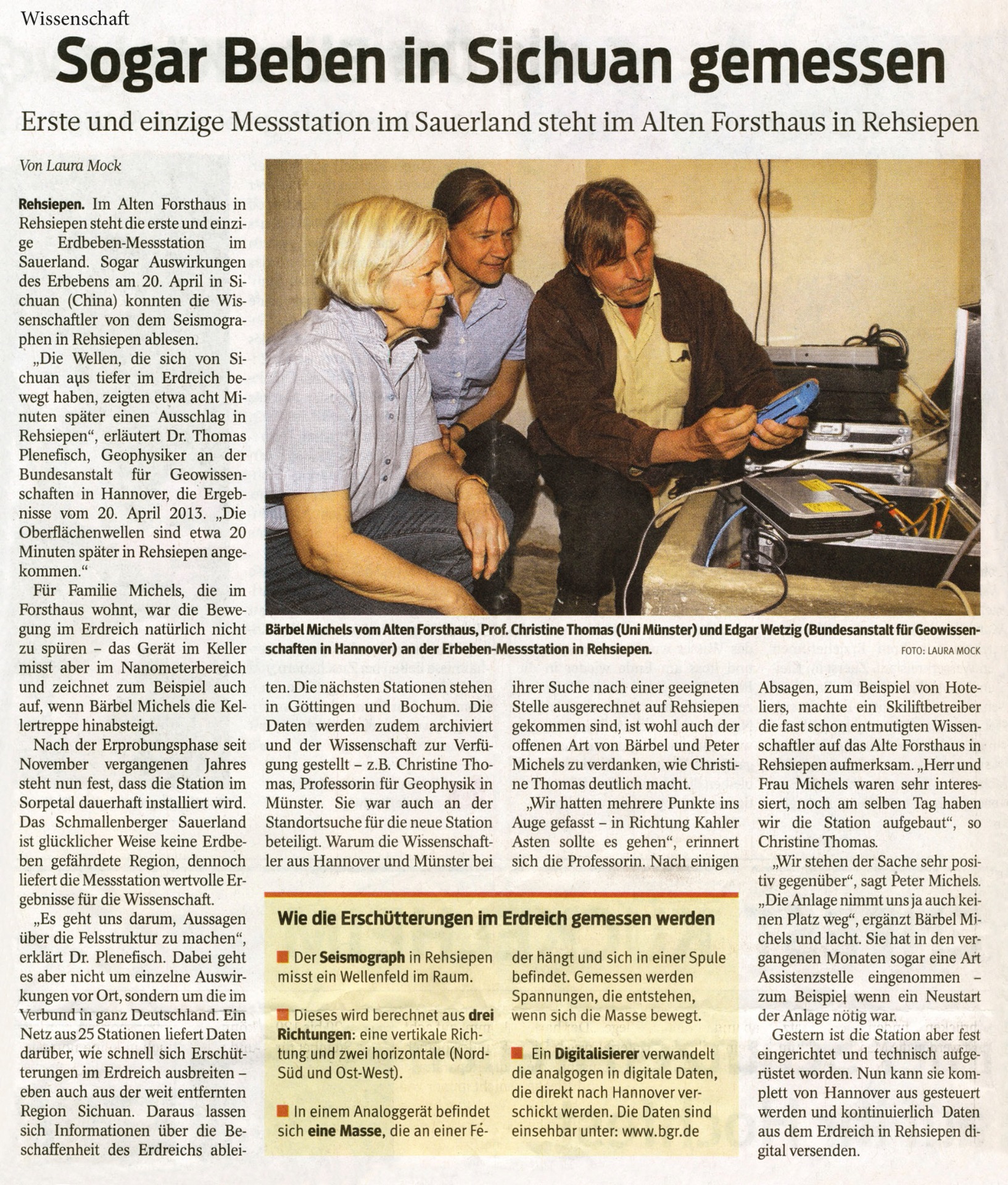 Unterstützung des Instituts für Geophysik der Universität Münster und der Bundesanstalt für Geowissenschaften in Hannover mit einer seismographischen Messstation